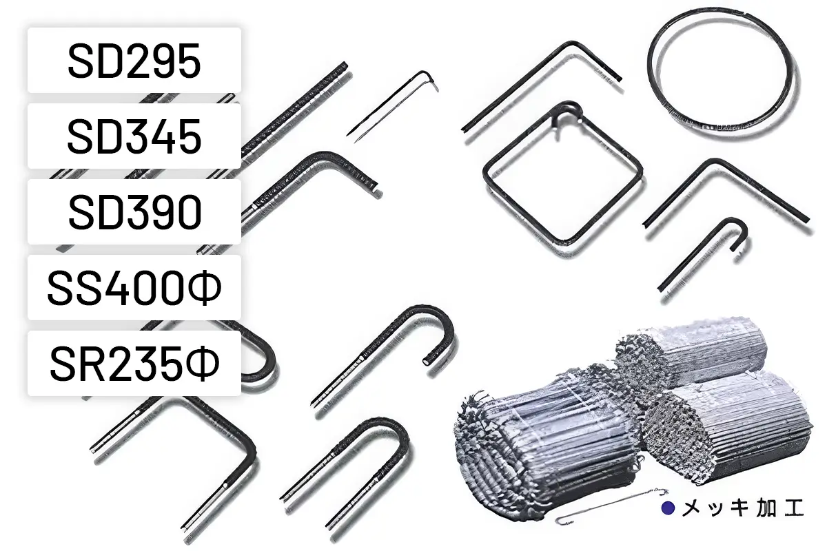 建設・土木現場で必要とされる形状に合わせて、切断・曲げ・メッキなど多様な加工に対応。